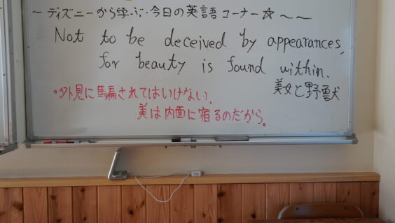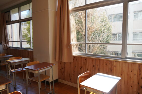 教室や廊下はこのように木の板が張られて、温かい雰囲気の中生徒たちは学習しています。