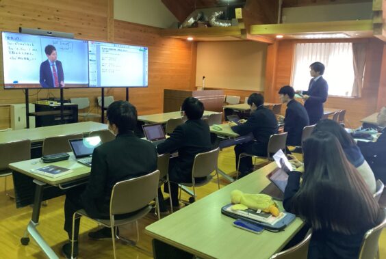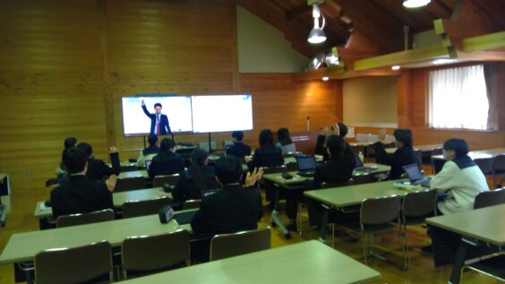 次は、不動岡高校と同時配信です。もちろん、高校間での意見交換も予定されています。同じ授業を他校の生徒と一緒に受け、かつ、意見交換をすることは、一般的には経験できません。多くの刺激を受け、成長へとつながることでしょう。